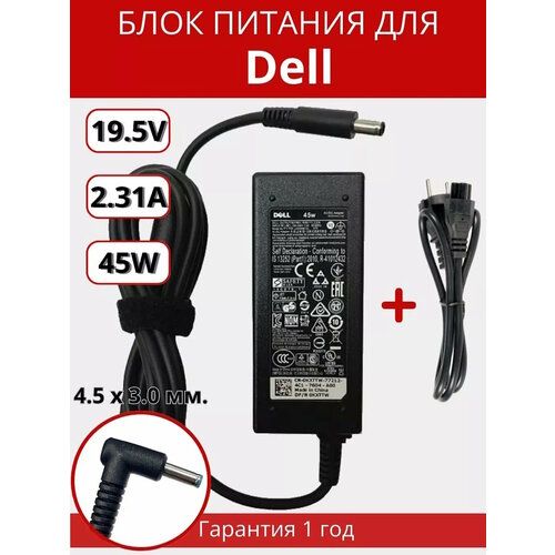 Блок питания для ноутбука Dell 4.5x3.0мм с иглой, 45W (19.5V, 2.31A) без сетевого кабеля