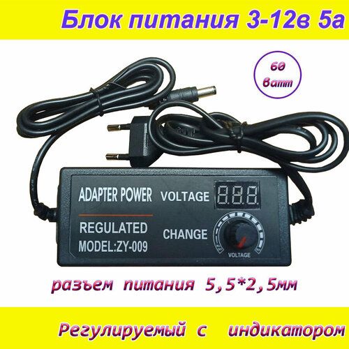 Найти - Блок питания регулируемый от 3вольт до 12вольт 5А ( 3-12V / 5A ) с индикатором напряжения, сетевой адаптер универсальный , штекер 5.5x2.5мм