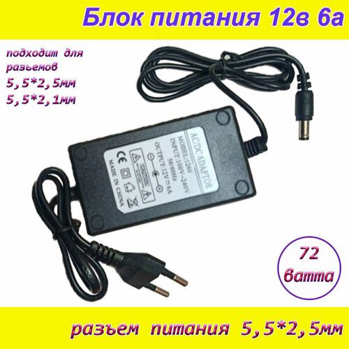 Найти - Блок питания 12В 6А ( 12V / 6A ), сетевой адаптер универсальный , штекер 5.5x2.5мм