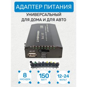 НАЙТИ ВЫГОДНЕЕ - Блок питания универсальный для ноутбука Live-Power, адаптер питания для пк, 150Вт, 8 разъемов, для дома и авто