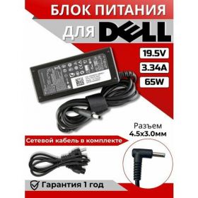 Блок питания для ноутбука Dell 4.5x3.0мм, 65W (19.5V, 3.34A) c сетевым кабелем