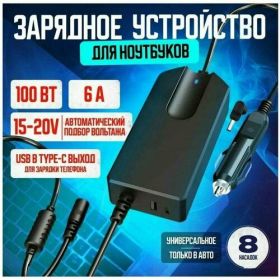 Найти - Универсальный блок питания для ноутбуков, зарядка для ноутбука в машину от прикуривателя, 8 насадок, USB, Type-c, 100 Вт