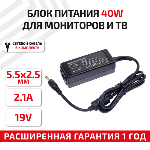 НАЙТИ ВЫГОДНЕЕ - Зарядное устройство (блок питания/зарядка) для монитора и телевизора LCD 19В, 2.1А, 40Вт, 5.5x2.5мм
