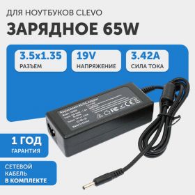 Найти - Зарядное устройство (блок питания/зарядка) для ноутбука Clevo 19В, 3.42А, 65Вт, 3.5x1.35мм