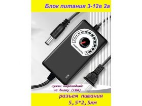 Блок питания регулируемый от 3вольт до 12вольт 2А ( 3-12V / 2A ) с индикатором напряжения, сетевой адаптер универсальный , штекер 5.5x2.5мм 102303604910
