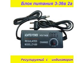 Блок питания регулируемый от 3вольт до 36вольт 2А ( 3-36V / 2A ) с индикатором напряжения, сетевой адаптер универсальный , штекер 5.5x2.5мм 103596920608