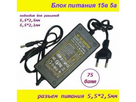 Блок питания 15В 5А ( 15V / 5A ), сетевой адаптер универсальный , штекер 5.5x2.5мм широкий корпус 102542188892