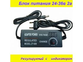 Блок питания регулируемый от 24вольт до 36вольт 2А ( 24-36V / 2A ) с индикатором напряжения, сетевой адаптер универсальный , штекер 5.5x2.5мм 102542584615