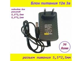 Блок питания 12В 3А ( 12V / 3A ), сетевой адаптер универсальный , штекер 5.5x2.5мм 102284964762
