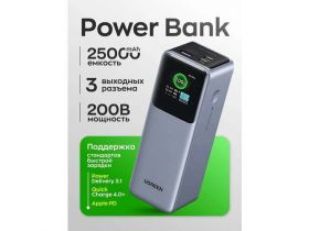 Внешний аккумулятор Ugreen25000 мАч, быстрое зарядное устройство, 200 Вт, серый 4461447842