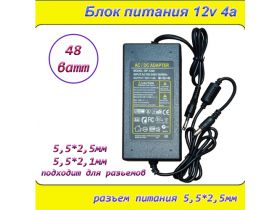 Блок питания 12В 4А ( 12V / 4A ), сетевой адаптер универсальный , штекер 5.5x2.5мм с кабелем 103758521508