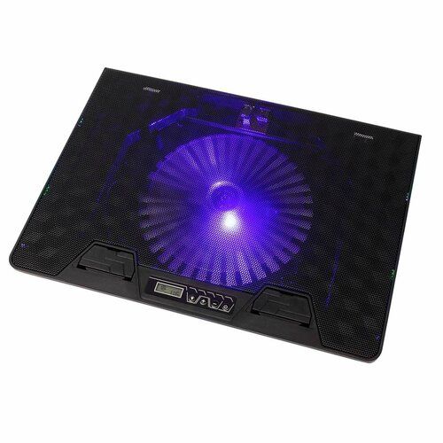 Охлаждающая подставка STM IP87 создана специально для игровых ноутбуков с диагональю экрана до 17.3 дюймов. Она оснащена одним мощными но тихими 180-мм вентилятором с синей подсветкой и регулировкой скорости. С помощью нескольких клавиш, расположенных рядом с ЖК-экраном, можно регулировать скорость вращения вентилятора или вовсе остановить его вращение, а так же выбирать режимы RGB подсветки по краям подставки.