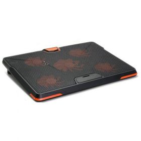 Корпус изготовлен из пластика и металлической сетки, что обеспечивает прочность и долговечность. Подставка поддерживает устройства до 19 дюймов и имеет компактные габариты — 390×295×30 мм. Оранжевая подсветка LED добавляет выразительности, а небольшой вес в 0,74 кг делает конструкцию лёгкой и мобильной. Кабель длиной 10 см аккуратно вписывается в рабочее пространство, не создавая помех.