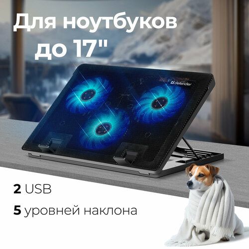 Подставка для ноутбука Defender 15.6-17", 2USB, 3 вентилятора: