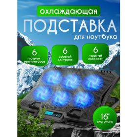 Подставка с 6 вентиляторами, это незаменимый аксессуар для работы за ноутбуком. Она обеспечивает охлаждение, что значительно продлевает срок службы устройства. А также держатель предназначен для комфортного использования ноута. Синяя подсветка создает атмосферу геймерского интерьера, добавляя эффектности внешнему виду. Она не только украшает рабочее пространство, но и помогает создать комфортную обстановку для работы или игры.