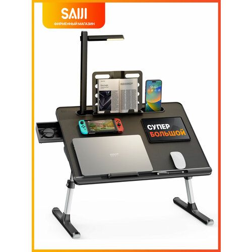 Найти - Столик для ноутбука в кровать складной с беспроводной лампой, черный, МДФ, SAIJI Ultra 8