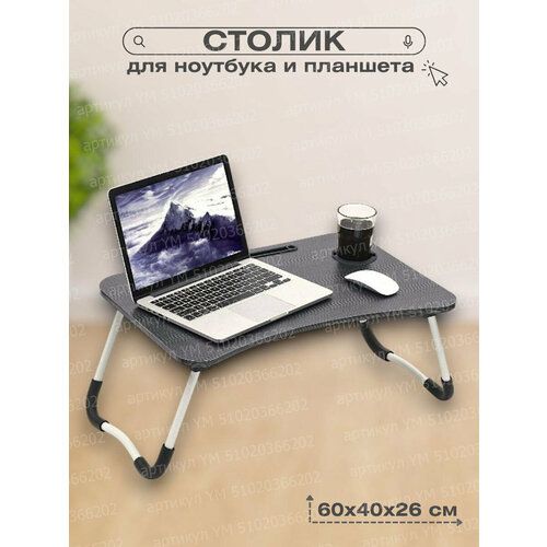Маленький стол для ноутбука, планшета - сочетает в себе стильный и эргономичный дизайн. Идеальное решение для комфортной работы в кровати, на диване или завтрака в постели. Легко складывается и раскладывается, что позволяет удобно хранить его в любом месте и быстро подготавливать к использованию. Практичный. Благодаря компактным размерам, легко брать с собой в дорогу или на природу. Широкая столешница изготовлена из качественного ЛДСП, предоставляет достаточно места для ноутбука, книг, чашки кофе или тарелки с завтраком. Ножки из металла. Антискользящее покрытие обеспечивает устойчивость и предотвращает скольжение на поверхности. Оснащен выемкой для гаджетов и отверстиями для шнуров зарядки. Также имеется подстаканник. Незаменимым помощником для тех, кто ценит комфорт и удобство в повседневной жизни.