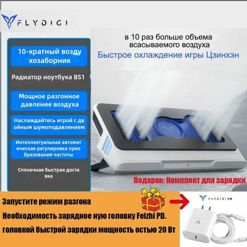 Охлаждающий кронштейн для ноутбука Flydigi BS1, интеллектуальное преобразование частоты, компьютерный кронштейн, подходит для Lenovo Dell Alien, Asus ROG Корпус оснащен закрытым воздушным турбонаддувом turbopress air, бесщеточным двигателем с частотой вращения 3000 об/мин и 120-миллиметровым вентилятором с шумом до 57 дБ, а также поддерживает интеллектуальное преобразование частоты, контроль температуры и автоматическую регулировку скорости [1].