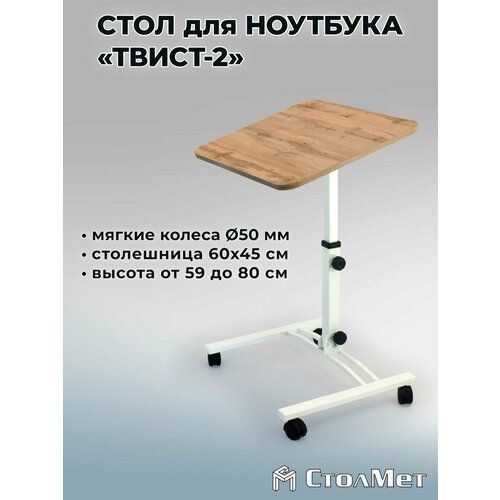 Складной стол «Твист-2» — это мобильный компьютерный столик на колесах, который может использоваться как подставка для ноутбука или в качестве компактного рабочего места. Размера столешницы (ширина 60см, глубина 45 см) вполне достаточно для установки ноутбука с диагональю 17″. При этом останется место и для мыши, если Вы не любитель пользоваться тачпадом. Вы также можете использовать его как прикроватный столик, например, для утреннего кофе.