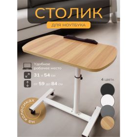 Найти - Столик для ноутбука WELHOME складной прикроватный на колесиках, стол компьютерный, бежевый