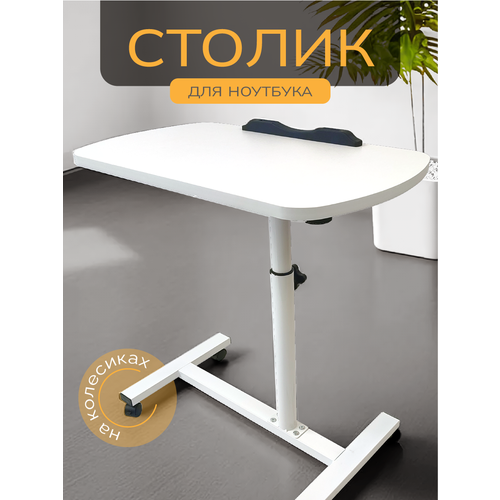 Найти - Столик для ноутбука WELHOME складной прикроватный на колесиках, стол компьютерный, белый