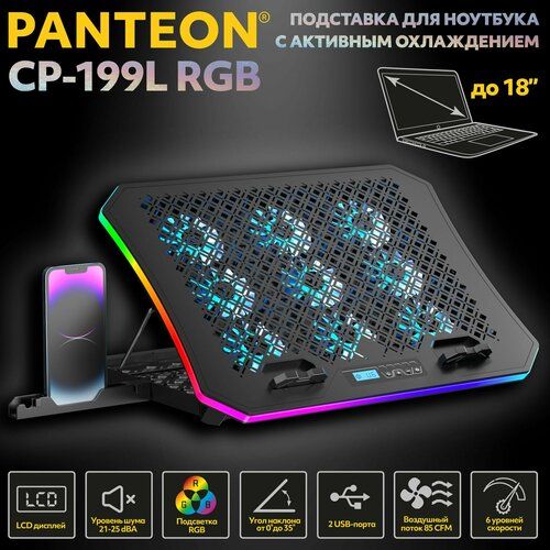 Найти - Подставка охлаждающая PANTEON, CP-199L, с ЖК-дисплеем, RGB-подсветкой, 18