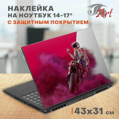 Найти - Наклейка на ноутбук виниловая 43х31 см, Мотоцикл, защитная пленка на крышку ноутбука, стикер самоклеющийся декоративный для моддинга задника 14-17 дюймов, СБ287