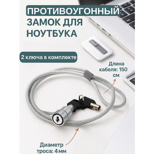 Найти - Противоугонный замок, для ноутбука, стальной, с ключом, длина кабеля 150см, серебристый