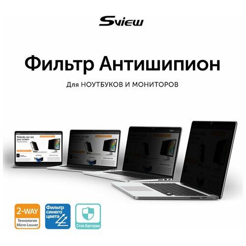 Фильтр Sview - это специальная защитная пленка для экрана компьютера, которая обеспечивает четкую картинку для пользователя напротив экрана, ограничивая угол обзора до 60°, что не позволяет видеть людям, сидящим по