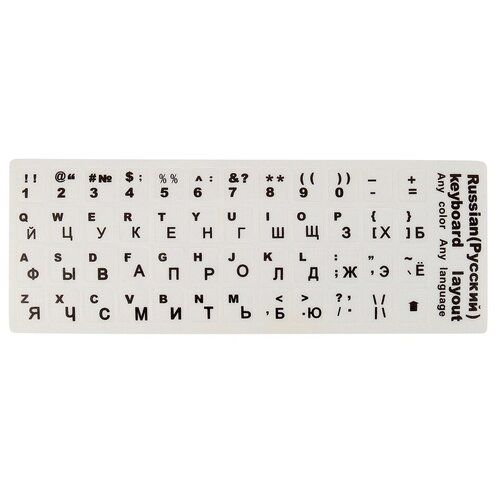 В упаковке вы найдете одну наклейку, которая предназначена для клавиатуры. Раскладка и шрифт наклеек – кириллические, что делает их удобными для использования на устройствах с русской раскладкой.