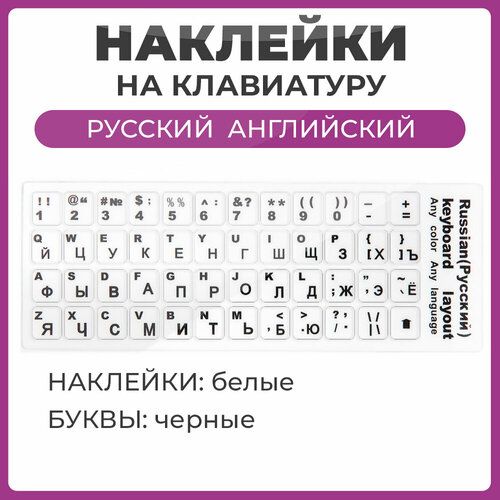 Найти - Наклейки на клавиатуру с русскими и английскими буквами и цифры, основа белая, буквы черные размер 11х13 мм