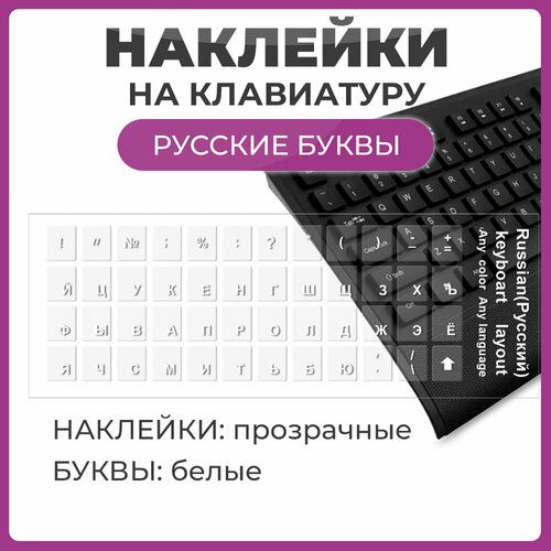Найти - Наклейки на клавиатуру с русскими буквами, основа прозрачная, буквы белые размер 11х13 мм