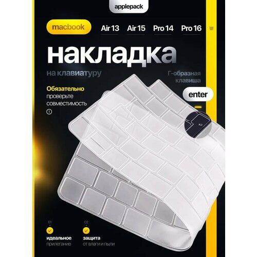 Накладка на клавиатуру для Macbook Pro 14/16 и Air 13/15 европейской версии (enter – г-образный) – это надежная и удобная защита вашего Macbook. Этот аксессуар разработан специально для MacBook, что обеспечивает идеальную посадку и комфортную эксплуатацию.