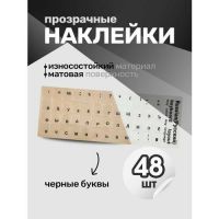 - Комплект: 48 наклеек — достаточно для всех букв, цифр и основных символов русской раскладки.
