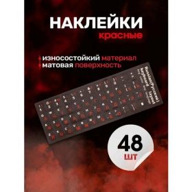 Наклейки для клавиатуры и ноутбука «Черный фон / Белые английские и красные русские буквы»