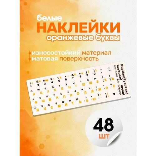 Наклейки для клавиатуры и ноутбука «Белый фон / Оранжевые русские буквы»