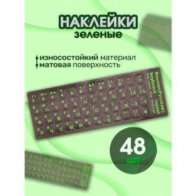 Наклейки для клавиатуры и ноутбука «Черный фон / Зеленые английские и русские буквы»