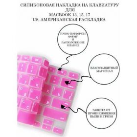 Силиконовая защитная накладка для Apple Macbook - полезный и практичный аксессуар для борьбы с преждевременным выходом из строя вашего ноутбука. Благодаря небольшой толщине материала, наклейка не утяжеляет дизайн ноутбука и практически не ощутима на клавиатуре. Накладка для клавиатуры мягкая и приятная на ощупь, выполнена в точном соответствии с клавиатурой вашего макбука. Она не мешает при наборе текста и сохраняет полный комфорт при эксплуатации. Легко и просто моется водой, сохраняя опрятный внешний вид надолго. Можно многократно клеить и отклеивать от клавиатуры. Накладка также предотвратит скопление грязи, пыли и крошек между клавишами и спасет ноутбук от случайно разлитого кофе. Все эти защитные свойства не только сохранят новый внешний вид устройства, но и защитят его от возможного ремонта. Силиконовая накладка на клавиатуру MacBook: не затрудняет нажатие клавиш; защищает от попадания влаги, мелких частиц еды, пыли; предотвратит быстрый износ клавиш; накладка не соскальзывает, не складывается на клавиатуре, а также не желтеет со временем; QWERTY раскладка клавиатуры; нанесены стандартные Английские (латиница) и Русские (кириллица) символы. Список совместимых устройств: Apple Macbook 13", 15", 17" (A1465, A1370, A1502, A1425, A1278, A1286, A1297, A1398, A1369, A1466). При покупке обратите внимание на американский вариант клавиши Enter, она прямоугольная Она станет отличным подарком для ребенка или взрослого, знаком внимания для коллеги или любимого человека.