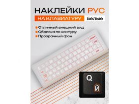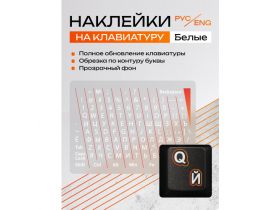 Наклейки на клавиатуру с русскими и английскими буквами прозрачные / Белые 4435625945