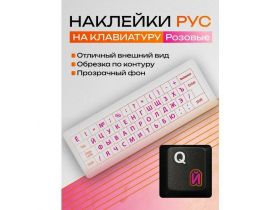 Наклейки на клавиатуру с русскими буквами / розовые, основа прозрачная, размер до 5х5 мм, в наборе пинцет и салфетка 4435625944