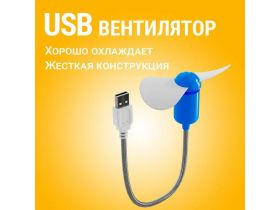 Компактный настольный мини USB вентилятор GSMIN Fan гибкий портативный, работает от PowerBank, Ноутбука, Компьютера (Синий) 103117702946