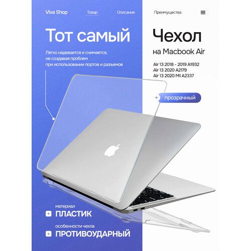 Найти - Чехол для MacBook Air 13 2020-2018 A1932, A2179, A2337 M1, пластик, прозрачный