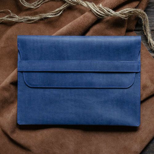 Найти - Кожаный чехол для ноутбука 13 дюймов, цвет синий. Натуральная плотная кожа. На застежке