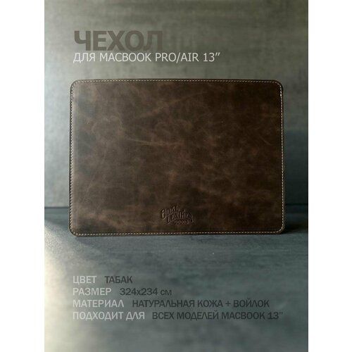 Найти - Кожаный чехол Табак для ноутбука MacBook Pro 13 2016-2022 (Intel, M1, M2); Air 13 2018-2024 ручной работы ODAL GOODS.