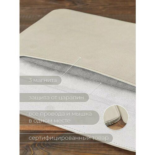 Защитный чехол для ноутбука 14 с сумкой для зарядного устройства и мышки. Стильный и удобный чехол для macbook air и macbook pro. Подойдет для всех ноутбуков известных на рынке диагональю 13, 13,3 и 14 дюймов из качественной экозамши. Чехол конверт для ультрабука - водонепроницаемый, защищает от повреждений, пыли и царапин в сумке. Конверт для ноутбука на трех магнитах, которые плотно держат его внутри. Также чехол для ноутбука можно использовать как подставку для мышки. Чехол для макбук эир 13 m1 незаменимый аксессуар для сохранения внешнего вида. Отличный подарок на любой праздник, такие как выпускной в школе или университете. Рекомендуемые максимальные параметры устройства: длина - 32.5 см, ширина - 23 см, высота - 1.7 см