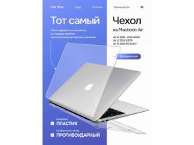 Чехол для MacBook Air 13 2020-2018 A1932, A2179, A2337 M1, пластик, прозрачный 101506428503