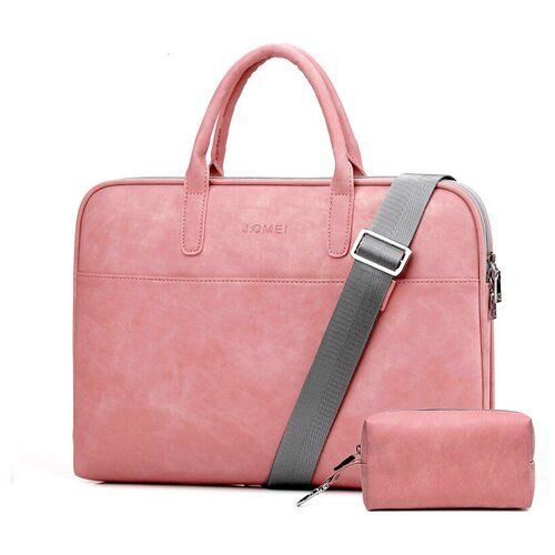 Найти - Сумка- портфель MyPads M933 для ноутбука из качественной искусственной кожи женская модная красивая с ручкой для переноски и с ремнем через плечо + сумочка для аксессуаров розового цвета (15.6/ 16.0 дюймов)
