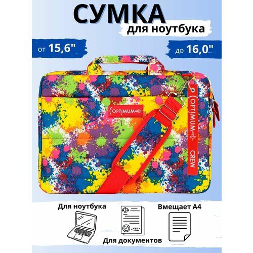 Optimum Ultra 15.6 RL, холи - cумка для ноутбука 15.6 15 16 дюймов RL. Яркая стильная сумка для ноутбука - папка с ручками обладает мягкой подкладкой для защиты от ударов. Сумка - папка органайзер для документов а4 имеет водоотталкивающую пропитку, что защитит содержимое от дождя. Папка на молнии а4 предотвращает случайное выпадение ноутбука и обеспечивает надежное хранение документов. Сумка унисекс, ее можно использовать как сумка для ноутбука женская так и сумка для ноутбука мужская. Сумка папка чехол для ноутбука 15.6 - имеет удобный плечевой ремень. Во внешнем отделении имеются держатели для авторучек и визиток, также легко поместится зарядное устройство, компьютерная мышь, HDD-накопитель, power bank и т. д. Карабины, петли и собачки изготовлены из металла. В комплекте - регулируемый по длине плечевой ремень с амортизирующей накладкой, предотвращающей скольжение. Используется как сумка - папка для документов (мужская, женская, детская), папка для тетрадей а4, папка для бумаг. Идеально подходит для городской среды и для учебы. Отличный подарок на день рождения мужчине, женщине, ребенку, любимой, любимому, коллеге. Нас ищут: сумки для ноутбука 15 15,6 15.6 15 6 дюймов; чехол для ноутбука 15.6 дюймов.
