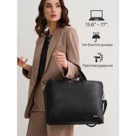 Сумка имеет три отделения. Основное для ноутбука и дополнительные два для аксессуаров, в которых Вы с легкостью разместите зарядку, мышь, документы А4, а так же кучу женских штучек: зеркало, расческу, смартфон, косметичку. Этот лаконичный и стильный кейс из лакированной экокожи впишется в офисный образ, но подойдет и любителям повседневного стиля. Также в сумке есть множество карманов и отделений для хранения мелочей.