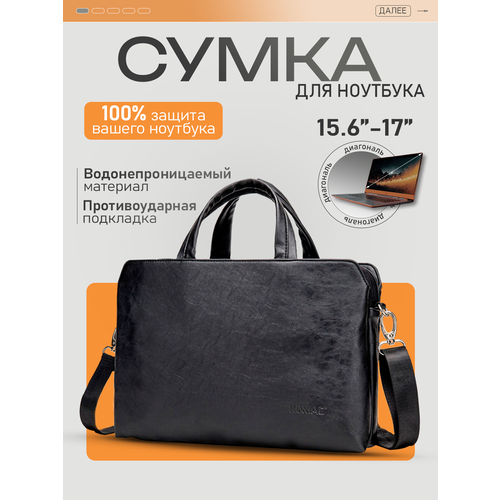 Найти - Сумка для ноутбука 15.6, 16 и 17 дюймов KINMAC с ремнем на плечо и 3 отделениями (Черная экокожа)